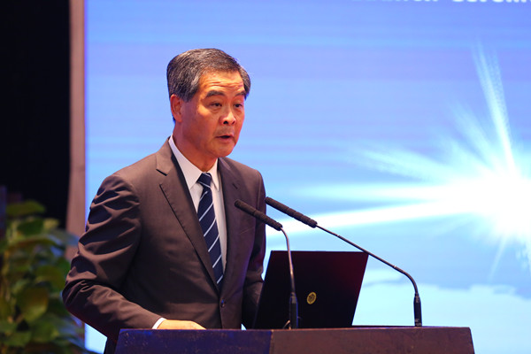 全國政協(xié)副主席、中國社會科學院“一帶一路”國際智庫專家委員會名譽主席梁振英致辭。本網記者 張哲 攝