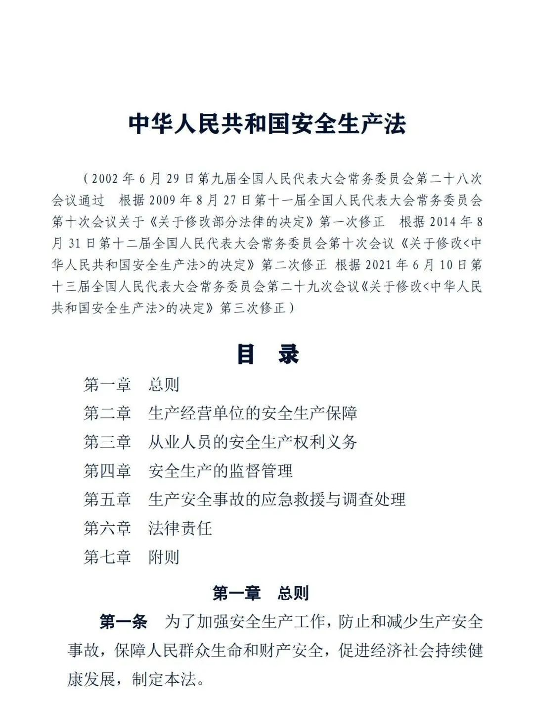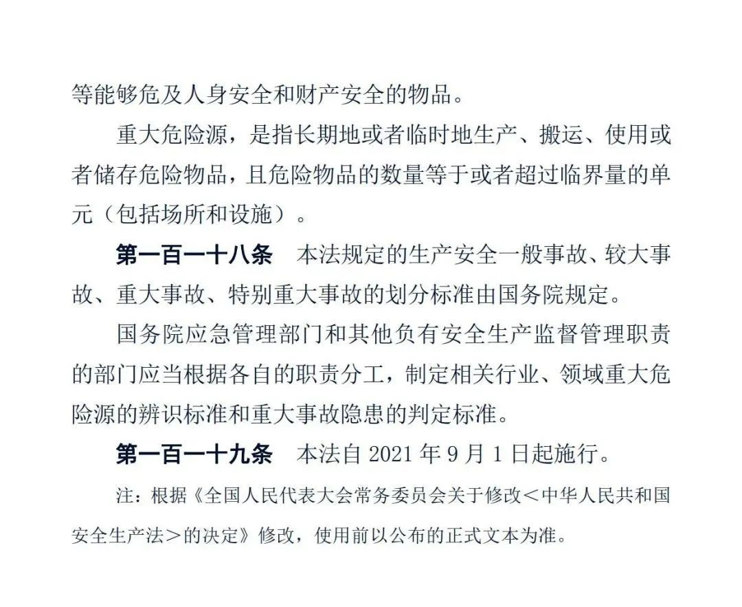 正式版《中華人民共和國(guó)安全生產(chǎn)法》
