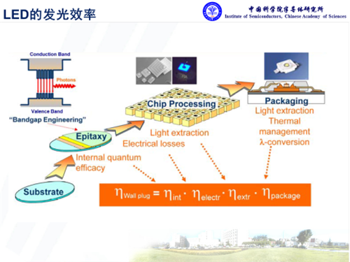 氮化鎵是直接帶隙的半導體材料,在光電應用方面具有獨特優(yōu)勢?;诘壍腍B-LED對于通用照明來說,其核心問題是發(fā)光效率。其中外量子效率主要取決于三個層面的因素,內(nèi)量子效率、光提取效率,還有封裝方面的熒光轉(zhuǎn)化等效率,而且每個環(huán)節(jié)都息息相關(guān)。