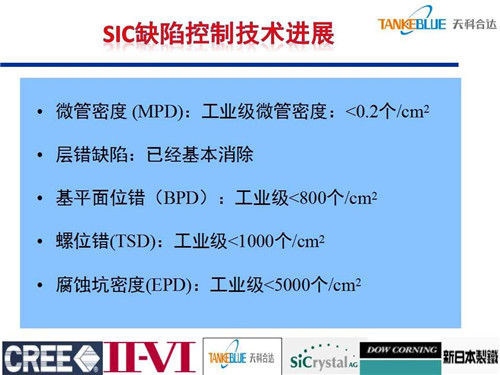 目前工業(yè)級碳化硅襯底微管密度小于0.2個/cm2,層錯缺陷基本消除,基平面位錯工業(yè)級襯底小于800個/cm2。經(jīng)預測,2019年碳化硅襯底市場約為3.5億美金,主要包括電力電子和微波領(lǐng)域,加上LED等其他領(lǐng)域應用,大概為8億美金。