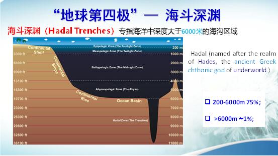 先介紹一下有關(guān)常識(shí)。在海洋水深大于6000米時(shí),叫海斗深淵,又叫地球的第四極。地球的四個(gè)極就是南極、北極、珠穆朗瑪峰和海斗深淵。