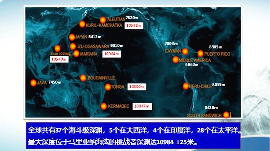 全球海洋深度大于6000米的區(qū)域只有1%左右,而海斗深淵卻有37個(gè),有5個(gè)在大西洋、4個(gè)在印度洋、其它的在太平洋。