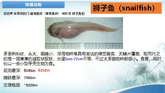 在2016年的考察中,首先對(duì)不同深度的海水波速進(jìn)行測(cè)量,其次是用攝像機(jī)在海底拍攝,收集深海的動(dòng)物和植物的情況,再次就是收集活的動(dòng)物。我們收集到在8000米以下生活的獅子魚(yú)和鉤蝦。可以說(shuō),我國(guó)對(duì)深海的生物研究有發(fā)言權(quán)了。