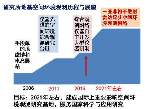 空間環(huán)境觀測臺鏈的發(fā)展走過了很長的道路。從上世紀(jì)80年代,就開始建地磁臺鏈,2006年,地磁臺鏈與武漢的電離層觀測站進(jìn)行整合,2011年,建起空間環(huán)境的綜合觀測,并正式運行。目前,正發(fā)展我們自主研制的觀測儀器。我們希望在2021年建成國際上的空間環(huán)境觀測臺鏈的觀測基地,服務(wù)于國家的科學(xué)和應(yīng)用研究。