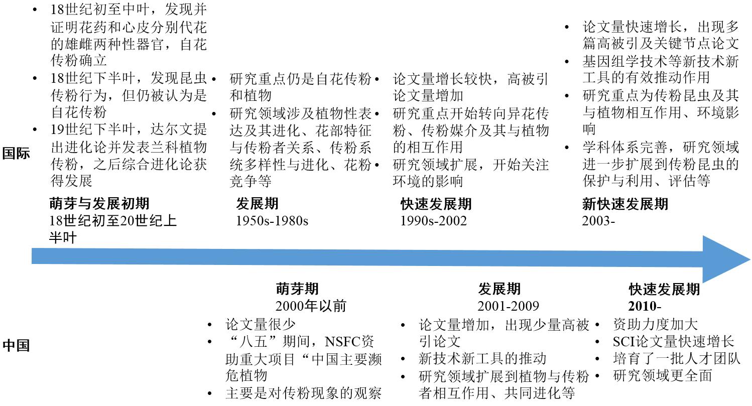 圖6傳粉生物學領(lǐng)域國際國內(nèi)發(fā)展歷程比較