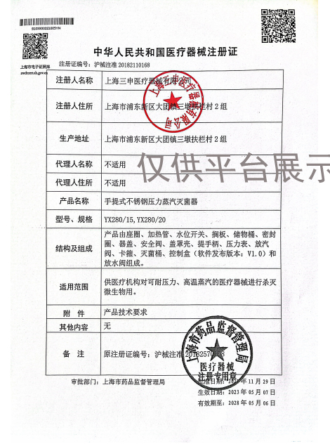 醫(yī)械網(wǎng)是一家提供三申手提式不銹鋼壓力蒸汽滅菌器YX280/20價(jià)格、參數(shù)介紹等信息的展示平臺(tái),為您提供優(yōu)質(zhì)的三申手提式不銹鋼壓力蒸汽滅菌器YX280/20產(chǎn)品,上海晚成醫(yī)療器械有限公司專(zhuān)注于各類(lèi)醫(yī)療器械批發(fā)及零售,聯(lián)系電話:400-006-1850。