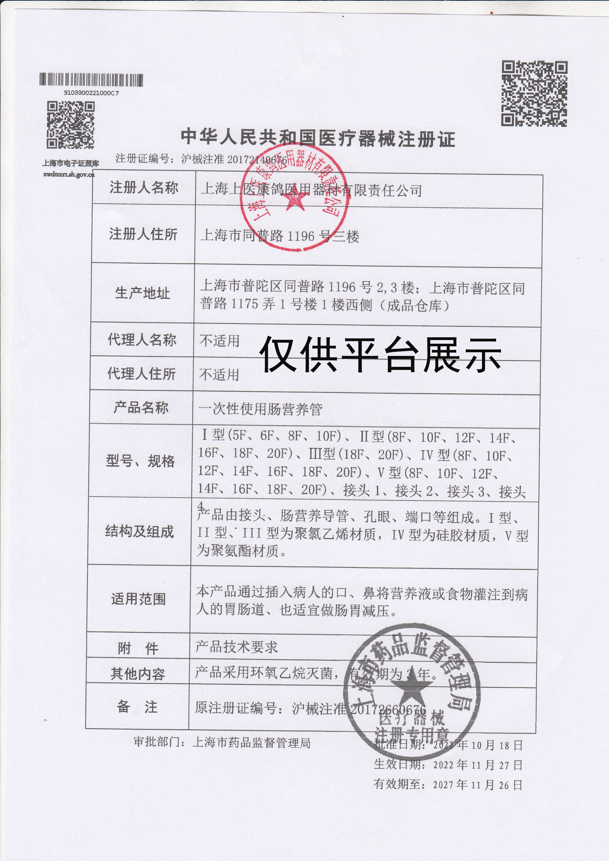 醫(yī)械網(wǎng)是一家提供康鴿一次性使用腸營(yíng)養(yǎng)管V型(PU)價(jià)格、參數(shù)介紹等信息的展示平臺(tái),為您提供優(yōu)質(zhì)的康鴿一次性使用腸營(yíng)養(yǎng)管V型(PU)產(chǎn)品,上海晚成醫(yī)療器械有限公司專(zhuān)注于各類(lèi)醫(yī)療器械批發(fā)及零售,聯(lián)系電話:400-006-1850。