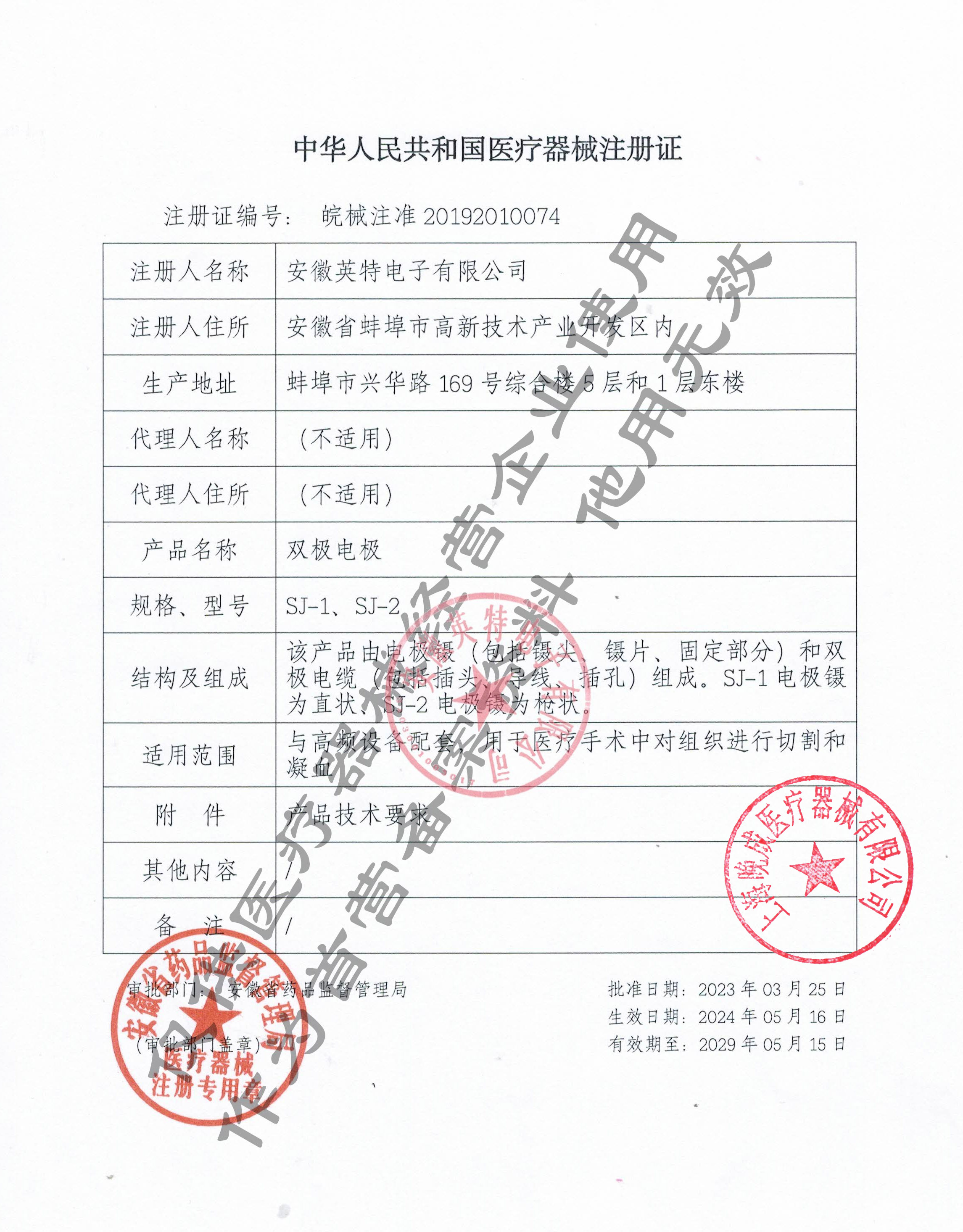 | 產(chǎn)品名稱 : | 安徽英特雙極電凝鑷 |