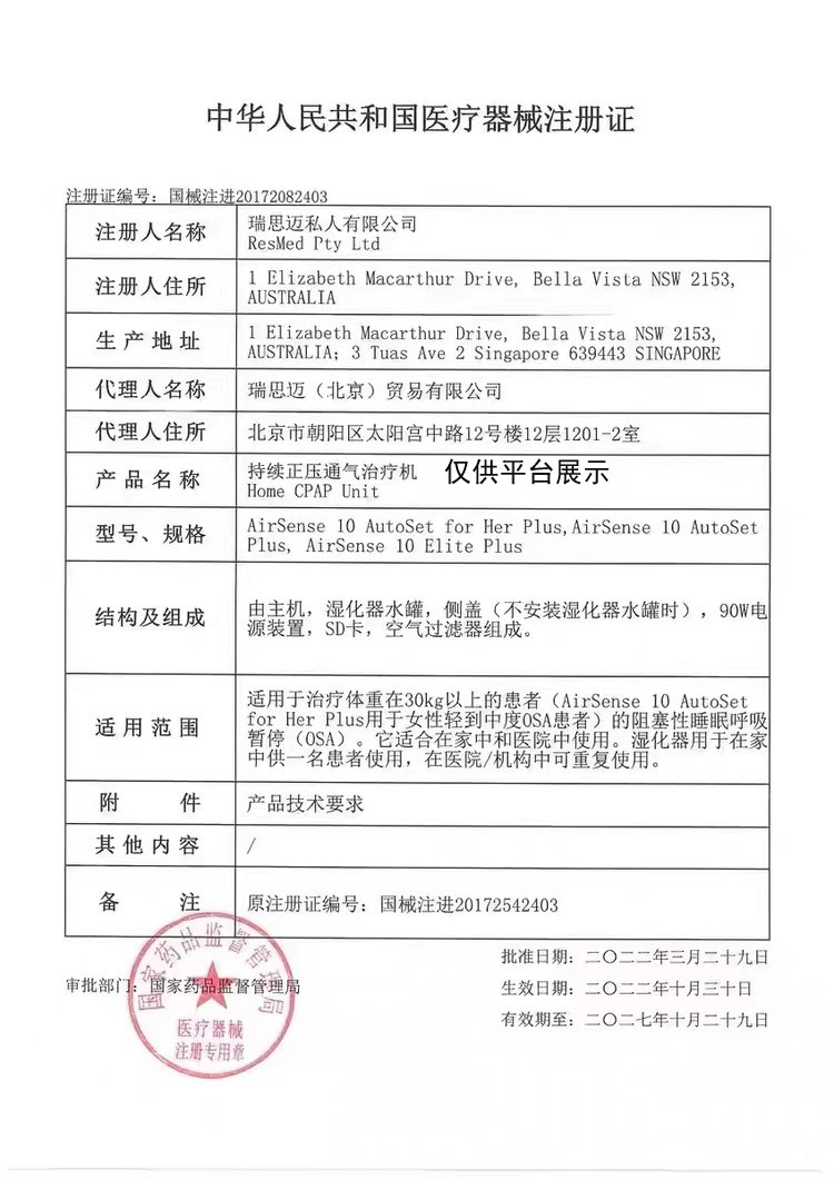 | 產(chǎn)品名稱 : | 瑞思邁全自動雙水平呼吸機S10 |