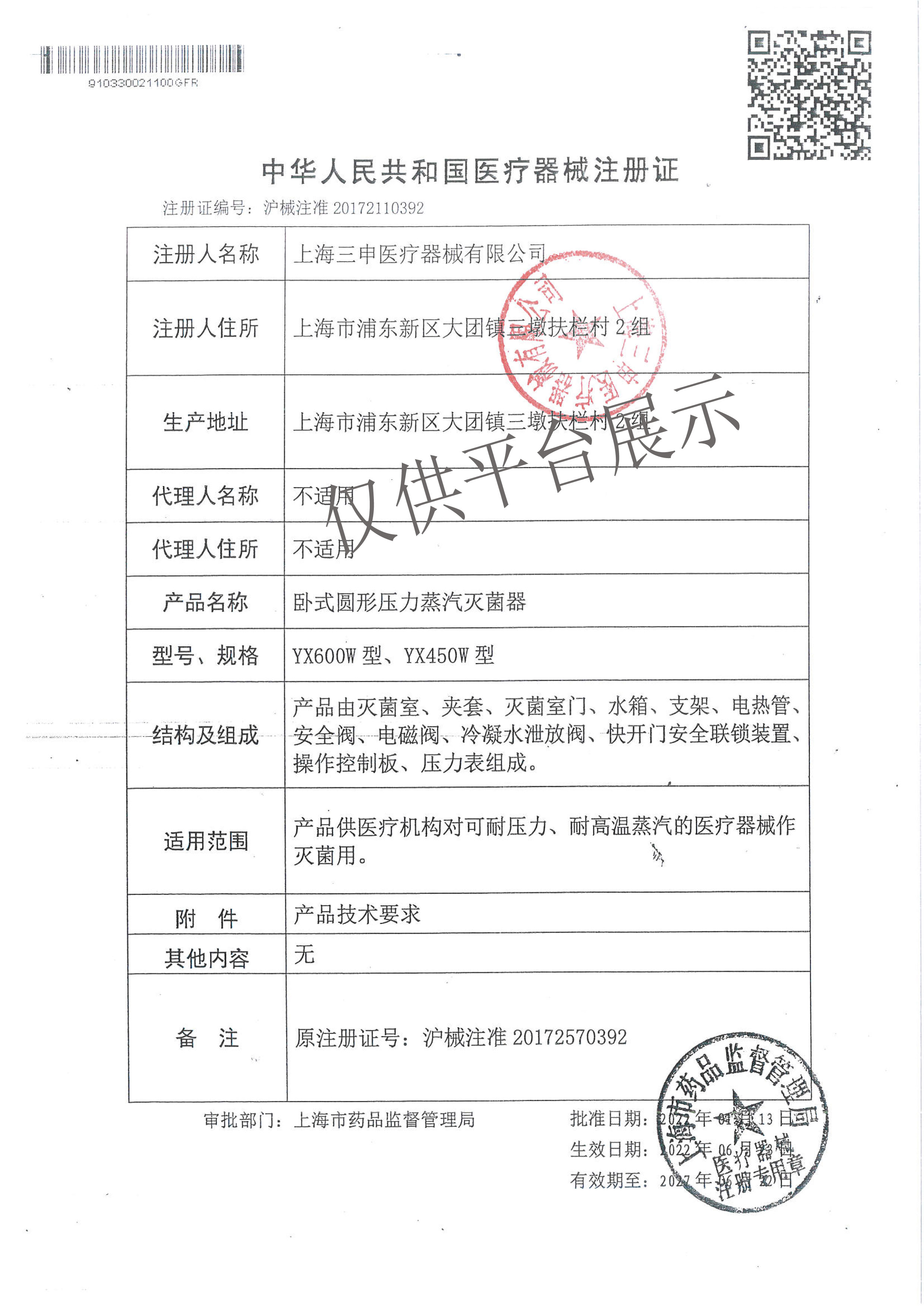醫(yī)械網(wǎng)是一家提供三申臥式圓形壓力蒸汽滅菌器YX450W價(jià)格、參數(shù)介紹等信息的展示平臺(tái),為您提供優(yōu)質(zhì)的三申臥式圓形壓力蒸汽滅菌器YX450W產(chǎn)品,上海晚成醫(yī)療器械有限公司專注于各類醫(yī)療器械批發(fā)及零售,聯(lián)系電話:400-006-1850。