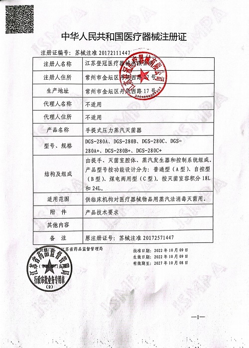 | 產(chǎn)品名稱 : | 登冠手提式壓力蒸汽滅菌器DGS-280B |
