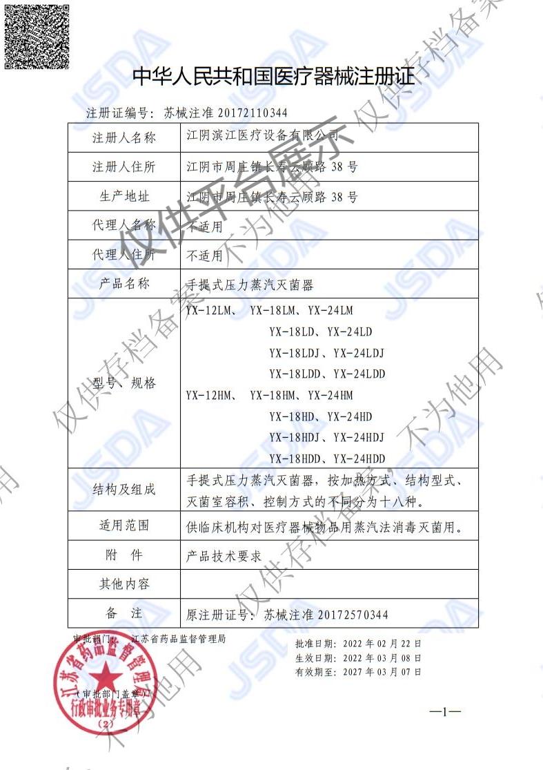 | 產(chǎn)品名稱 : | 濱江醫(yī)療手提式滅菌器YX-18HDD |