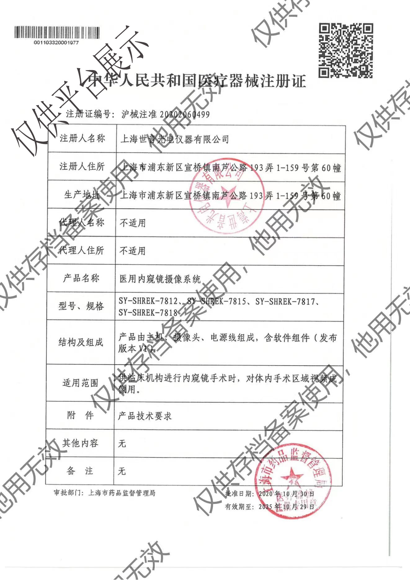 上海世音數(shù)字全高清內(nèi)窺鏡攝像系統(tǒng)SY-SHREK-7815 |