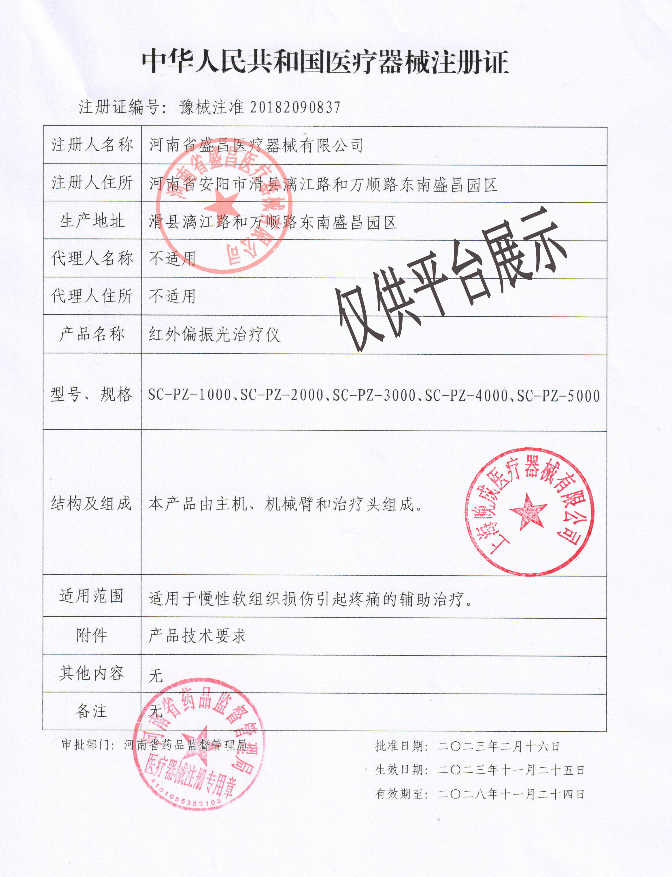 產(chǎn)品名稱 : 盛昌 紅外偏振光治療儀 SC-PZ-3000型