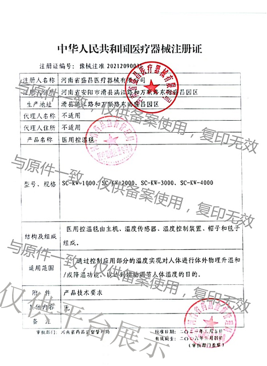 | 產(chǎn)品名稱 : | SC-KW-4000型 醫(yī)用控溫毯 |