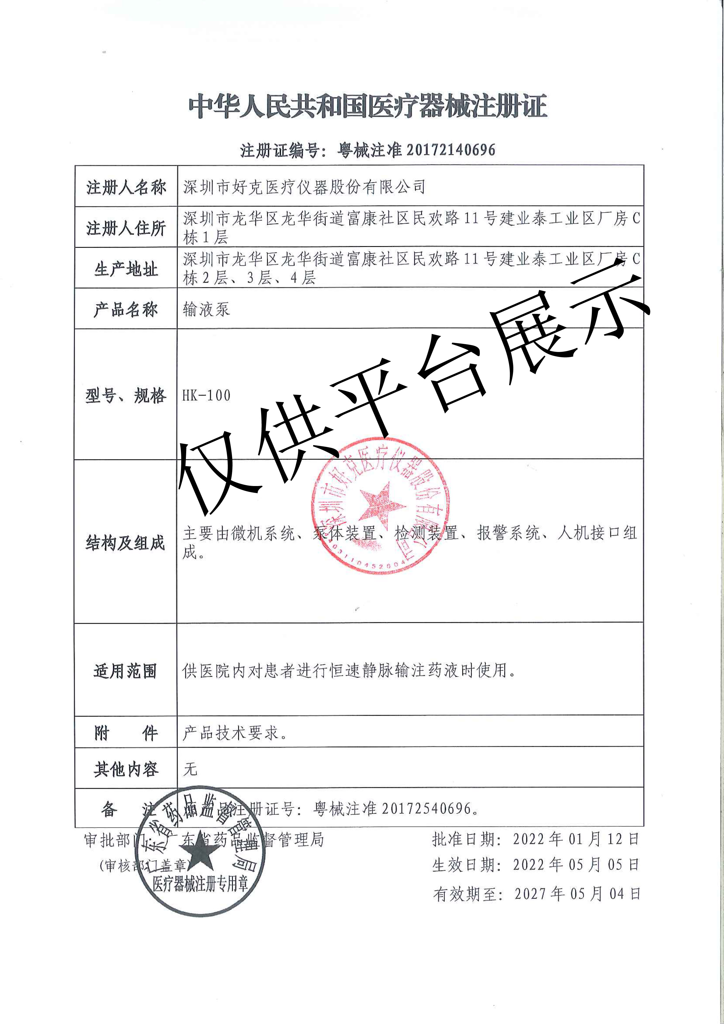 產(chǎn)品名稱 : 深圳好克輸液泵HK-100