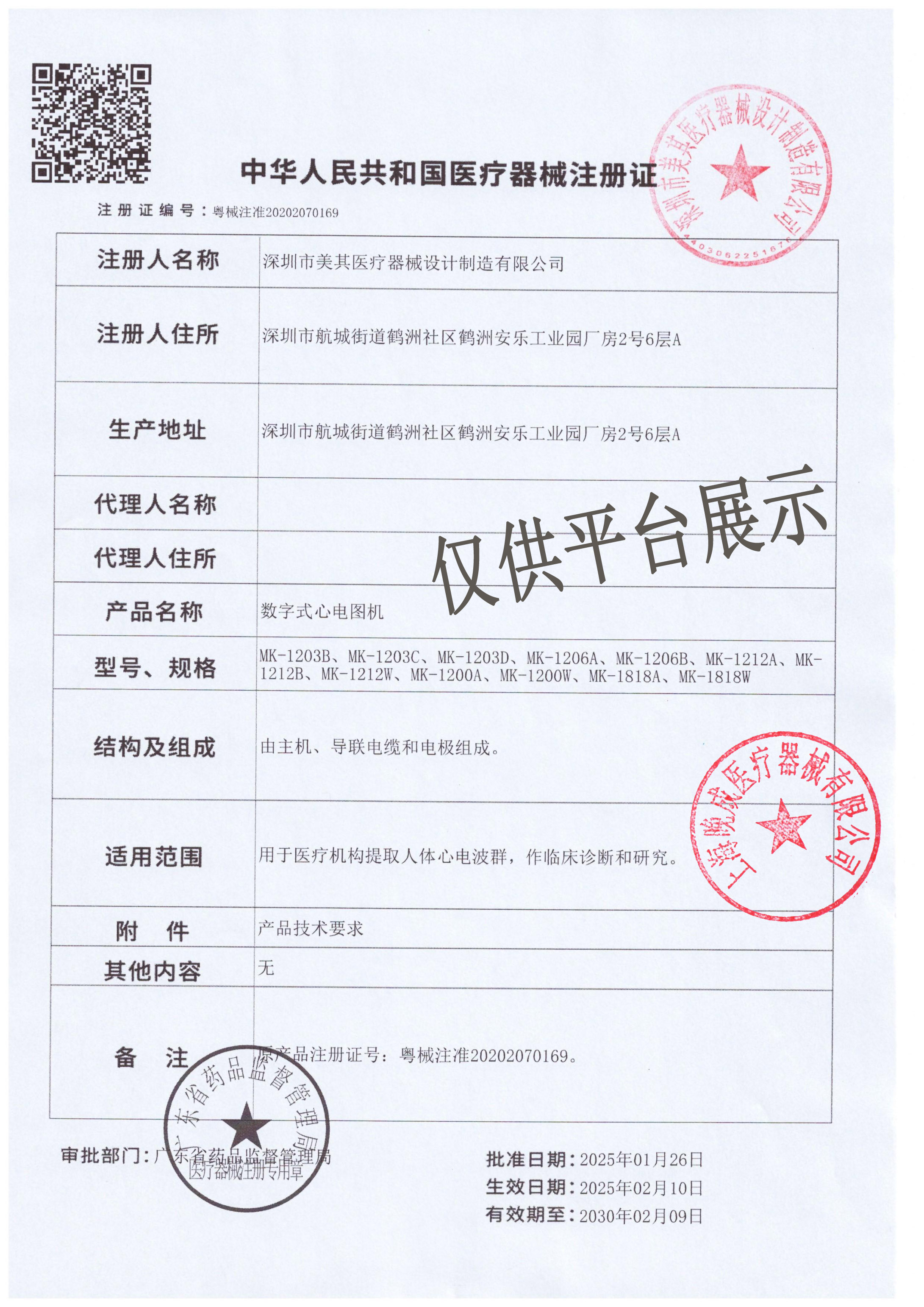 產(chǎn)品名稱(chēng) : 深圳美其 數(shù)字式心電圖機(jī)MK-1212A型