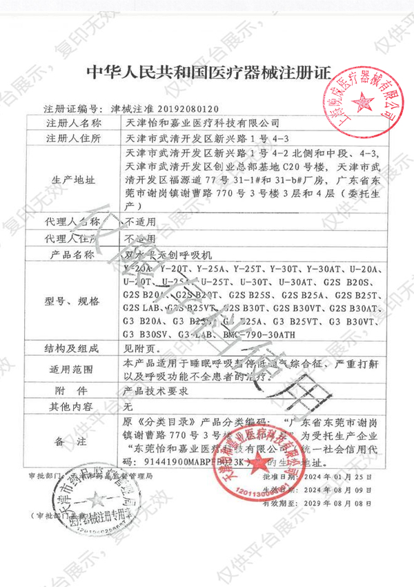 產(chǎn)品名稱 : BMC 瑞邁特?zé)o創(chuàng)雙水平呼吸機(jī) G2S B20A