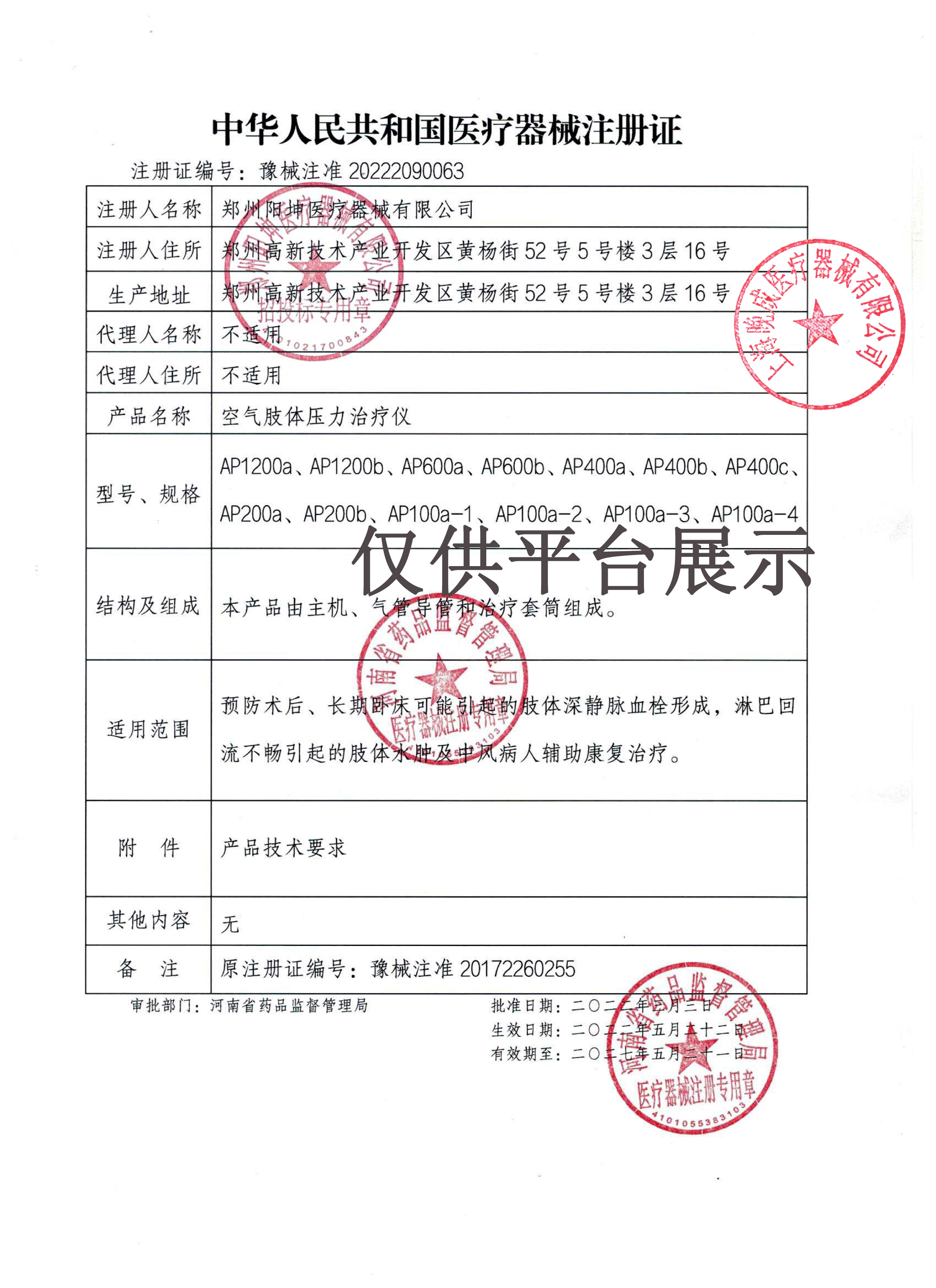 | 產(chǎn)品名稱 : | 陽坤 四腔空氣肢體壓力治療儀AP400b 三種治療模式 |