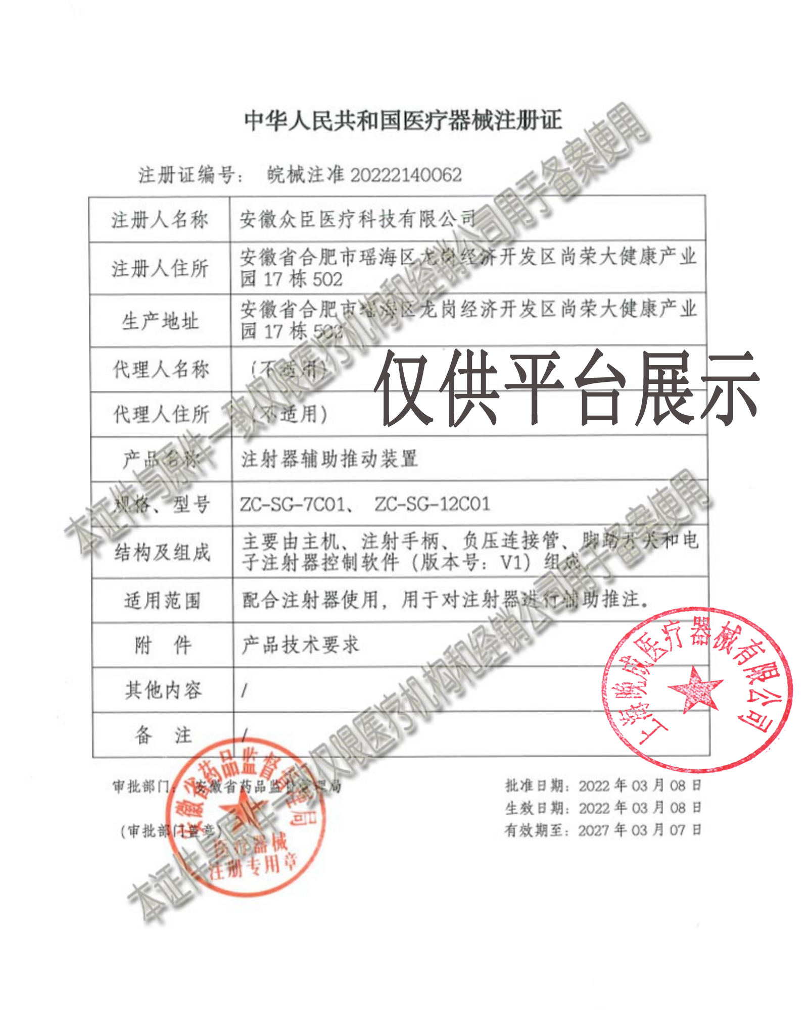 | 產(chǎn)品名稱 : | 安徽眾臣水光機12寸黑金版 注射器輔助推動裝置ZC-SG-12C01 |